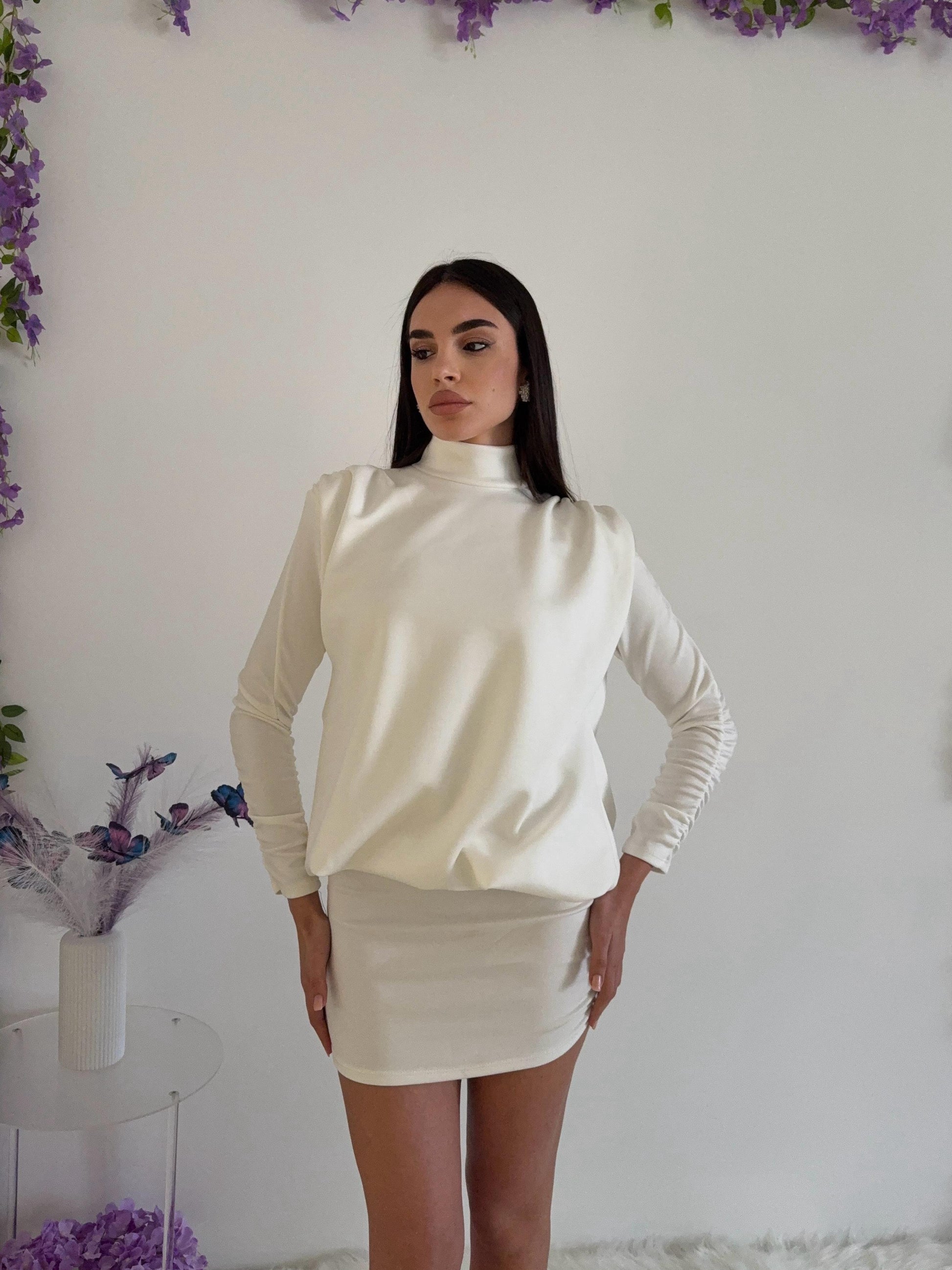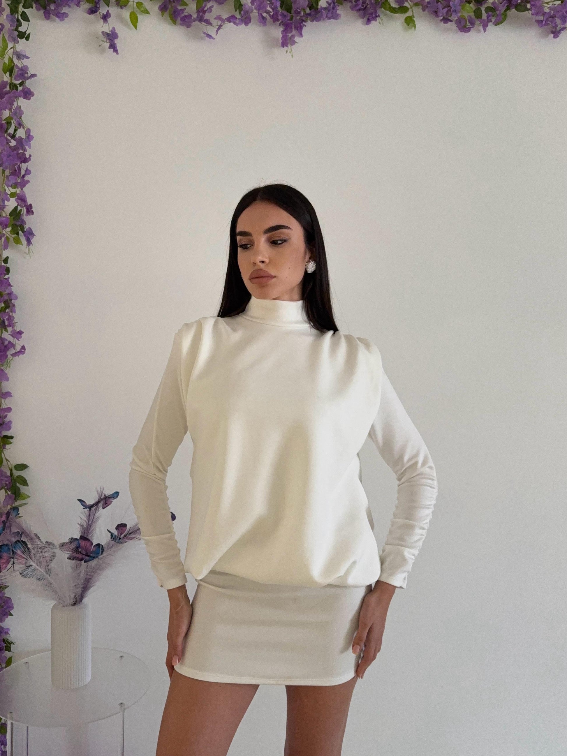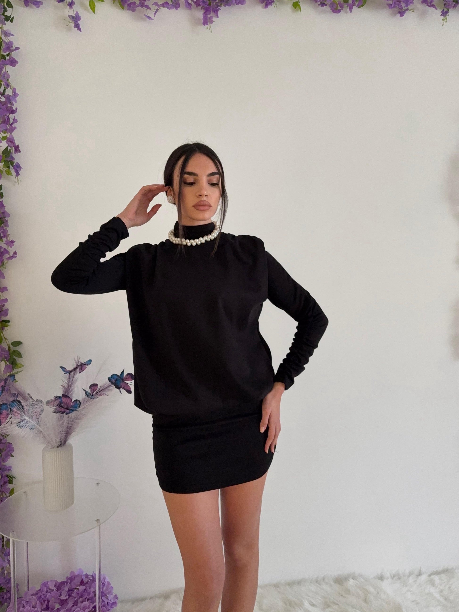Abitino largo sopra e stretto sotto, che crea una silhouette elegante e femminile. La scollatura sul retro aggiunge un tocco di sensualità e originalità , rendendolo perfetto per occasioni speciali.