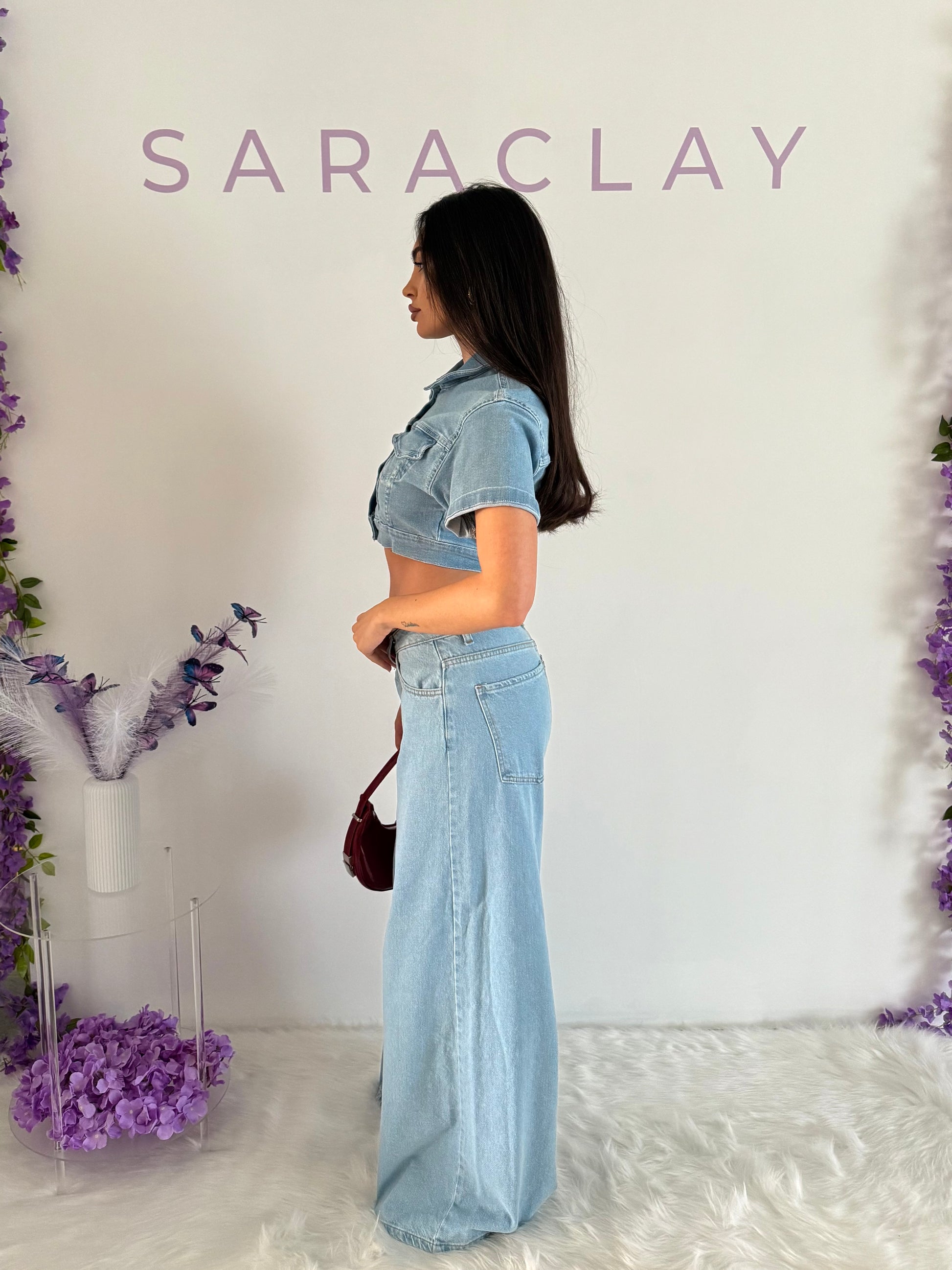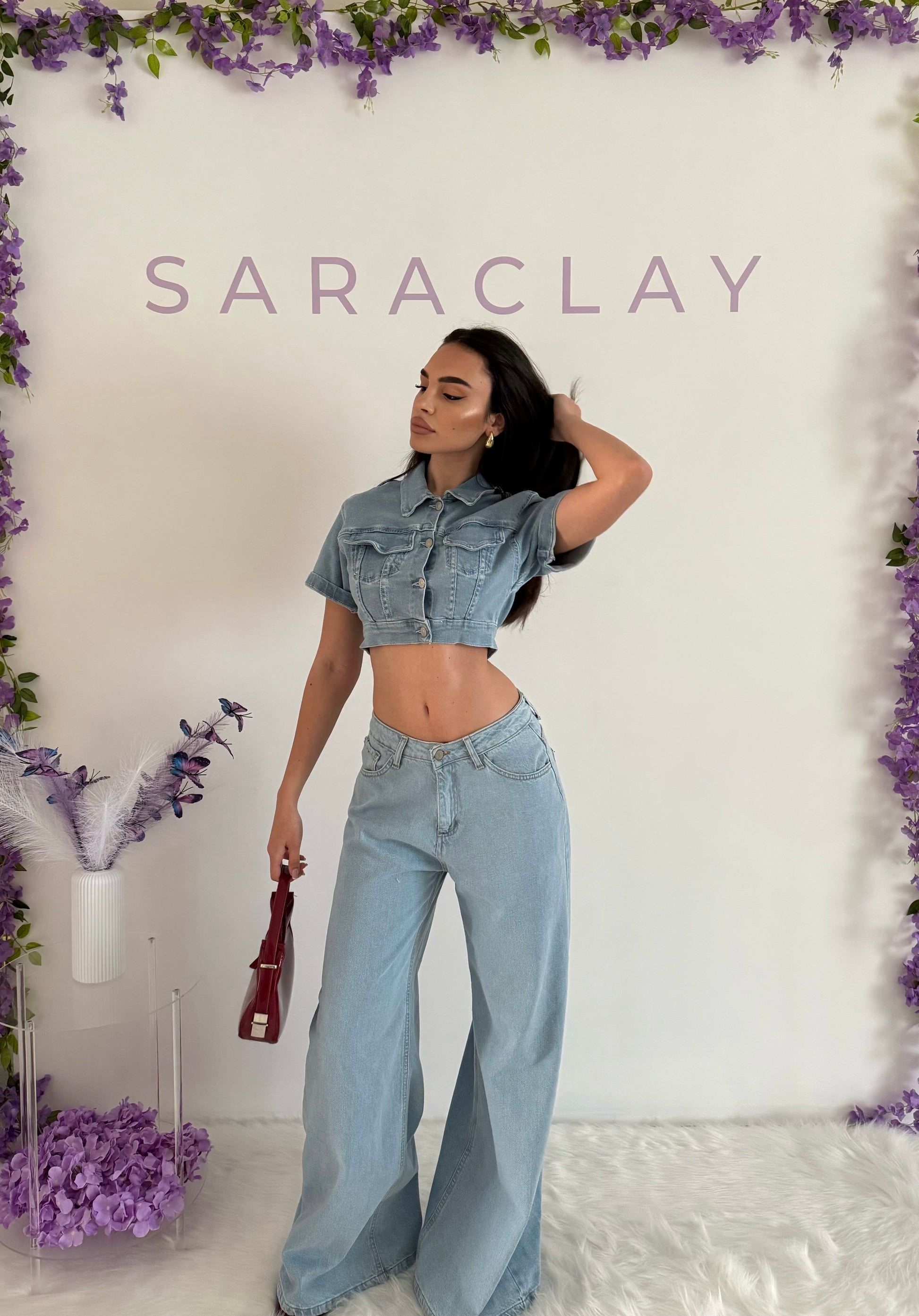 Jeans larghi e lunghi + giacchettino a mezze maniche: il mix perfetto tra comfort e stile. Vibe casual, taglio over, mood deciso. Denim never dies.