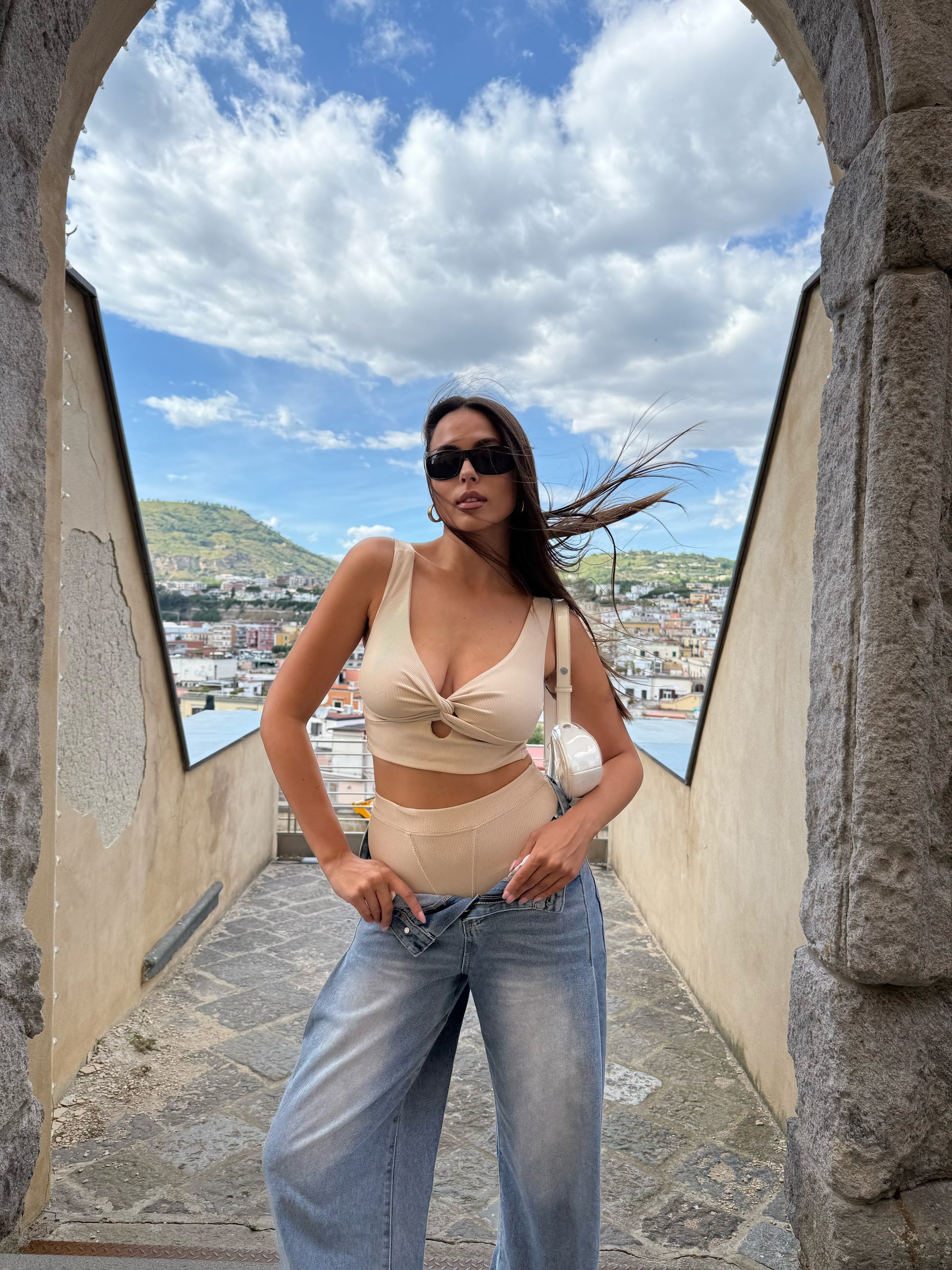 Coordinato pantaloncino culotte e top, può essere indossato con e senza jeans !
